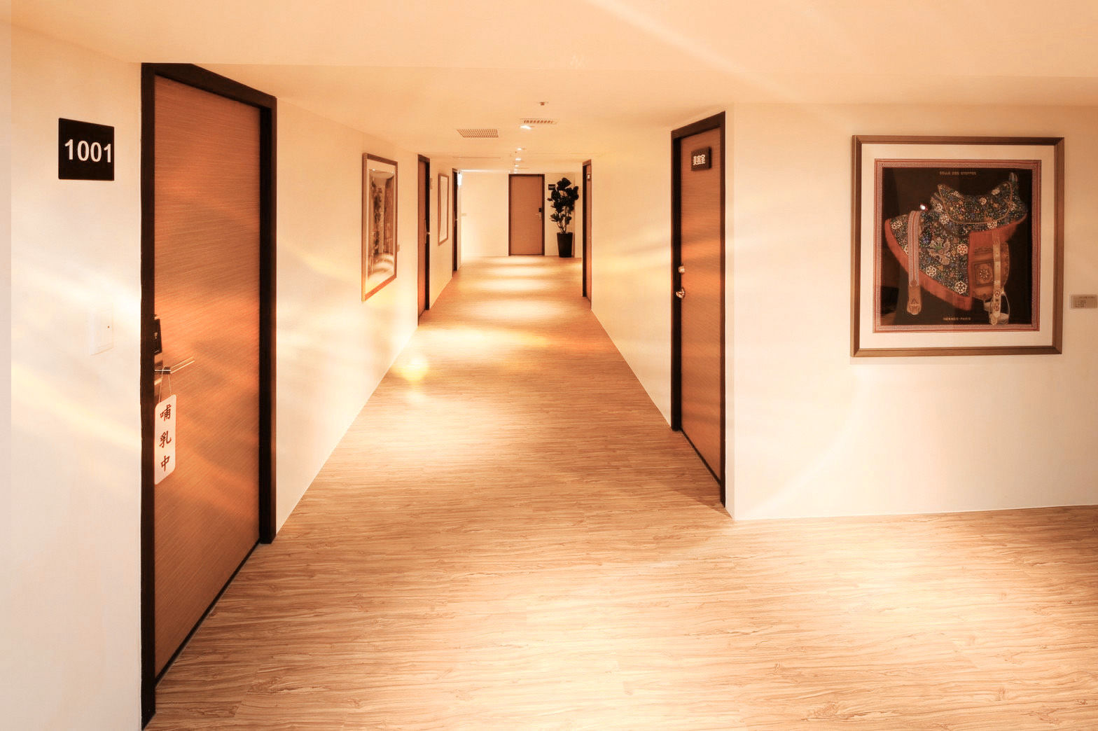 專為產後媽媽量身打造的藝廊空間,步出房門就能欣賞畫作。透過每幅畫所呈現的豐富色彩,透過色彩療癒即能到達到減壓與療癒的作用。館內的畫作,皆來自Hermes品牌。每年將會進行ㄧ次義賣會,義賣金額將全數捐給弱勢家庭基金會。